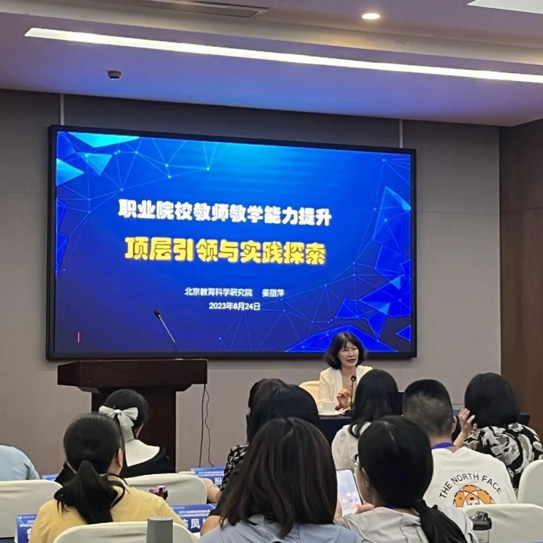 开班式后,北京市教育科学规划办主任、教育部职业院校信息化教学指导委员会副主任姜丽萍研究员为参赛团队作了题为《顶层引领与实践探索》的专题讲座,深度解读国赛方案文件和评分标准。
