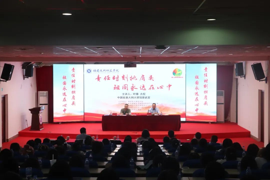 9月25日,由我校与福清市关心下一代工作委员会、福清市委文明办联合开展的“责任时刻挑肩头 祖国永远在心中”专题宣讲会暨校园文化品牌活动香樟夜话第48期在我校五马山校区科学楼金泰学术报告厅举办。中国驻意大利大使馆原武官、联合国和平荣誉勋章获得者、福清市关工委顾问、福清市关工委五老报告团团长叶锋应邀来校,为师生们带来精彩宣讲报告。校党委副书记林海峰向叶锋武官表示热烈欢迎。福清市政协副主席、市关工委主任吴华云,福清市委宣传部副部长、市委文明办主任郭芳辉、福清市关工委常务副主任陈同云校党委宣传部、学生工作部等主要负责人参加了有关活动。