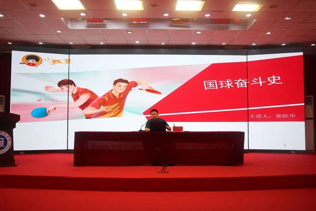 郭跃华教授以“乒乓球为什么是国球”、“运动家的基本素养”为切入点,作了题为《国球奋斗史》专题报告。他向新同学们讲述了我国几代乒乓球运动员百折不挠的奋斗史,分享了个人运动生涯的心路历程。他勉励同学们树立为国争光的家国情怀,涵养百折不挠的顽强品质,保持勇于超越的昂扬斗志,敢于有梦,勇于追梦,勤于圆梦。