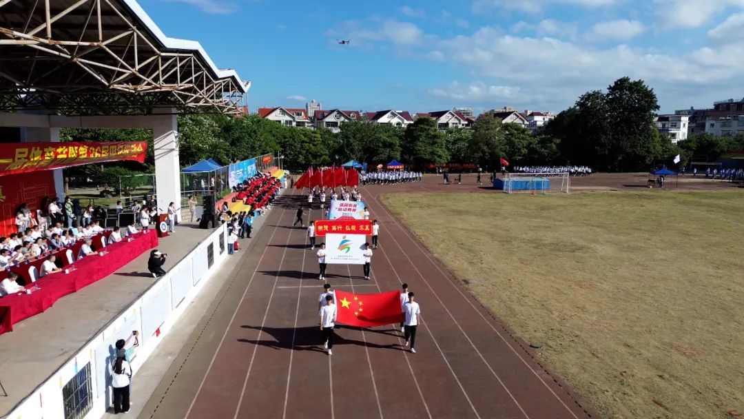 入场仪式结束后,全体起立,奏唱国歌。校党委委员、副校长姜兴山致开幕词,他代表学校党委行政和本届田径运动会组委会,对运动会和体育节的顺利召开表示由衷的祝贺,向运动员、教练员、裁判员以及工作人员致以亲切的问候!他表示,学校始终关心师生员工的生命健康,坚决响应国家号召,积极开展篮球赛、排球赛、足球赛等各类阳光体育运动。我们举办运动会和体育节,就是为了不断强化健康第一的思想和终身运动的观念,推动我校广大师生积极参加体育锻炼,增强体质,增进健康和活跃课余生活。他希望所有运动员,在赛场上为友谊相拥,也学着诠释竞争的内涵;全体裁判员本着“公平、公开、公正”的原则,严谨执裁,圆满完成各项裁判工作;全体工作人员做到“后勤有保障,服务不打烊”;所有观众“文明观赛事,理智对输赢”,团结友爱,齐心协力,文明守纪,以良好的精神风貌为运动员加油助威。全体师生以本届运动会的举办为契机,继续发扬勇攀高峰,不断超越,团结奋进的体育精神,自信自强、守正创新,踔厉奋发、勇毅前行,努力开创学校发展的新局面。