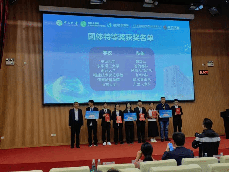 第四届“首创智能-东方仿真杯”全国大学生环境实践创新设计大赛是由广东省环境保护产业协会、中山大学、北京首创智能生态科技有限公司、东方仿真科技(北京)有限公联合主办。本次大赛共有全国高校140多支队伍参加,设置三个考核内容,分别为理论知识考核、流域综合整治和污水管网设计虚拟仿真考核、团队流域综合整治PPT展示答辩考核。决赛共设特等奖6队,一等奖26队,二等奖26队。(海洋学院)