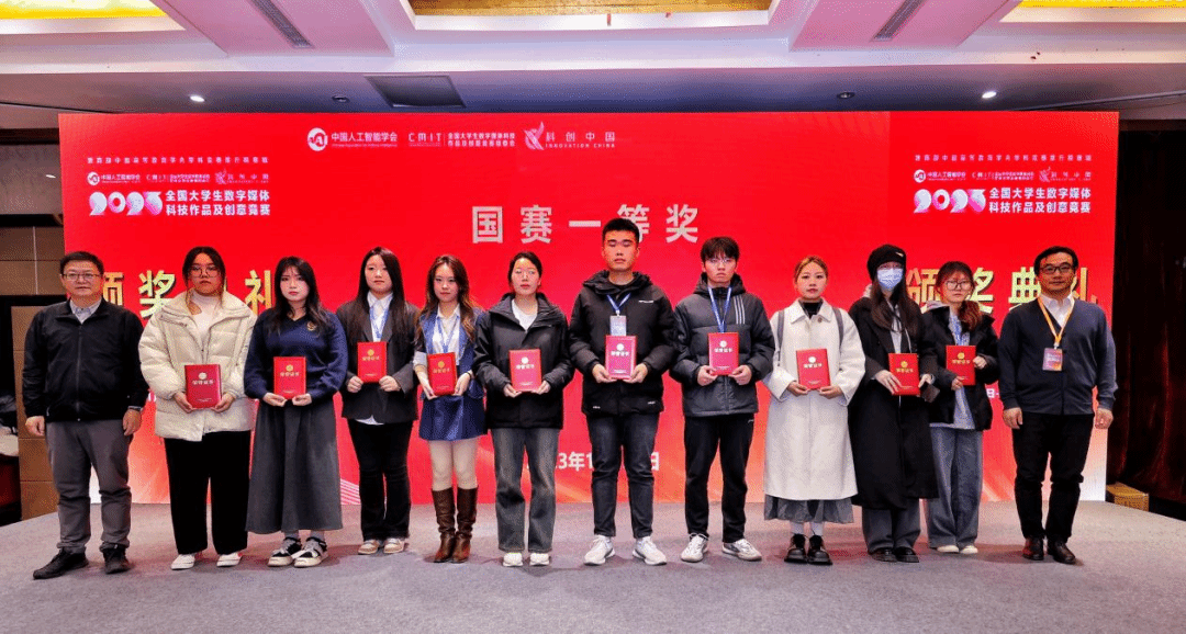 11月24日—11月27日,第十一届全国大学生数字媒体科技作品及创意竞赛总决赛在江苏常州成功举办。经过激烈的角逐,我校大数据与人工智能学院代表队荣获全国一等奖,创下我校在该赛事的历史最佳成绩。指导老师张丹荣获优秀指导教师称号。