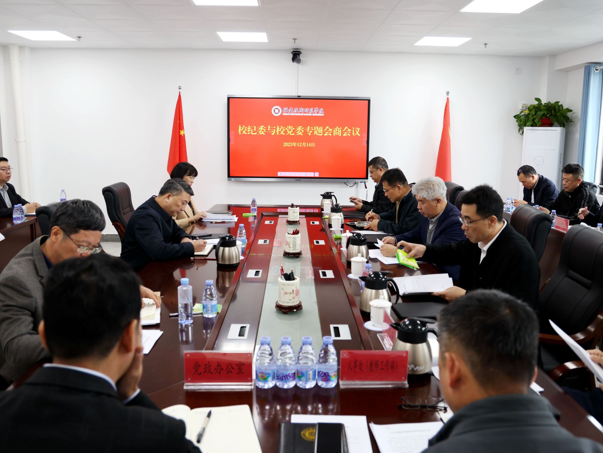 为落实《福建技术师范学院纪委(监察专员办)与校党委专题会商实施办法(暂行)》要求,增强监督合力,推动学校发展,12月14日上午,校纪委与校党委召开专题会商会议,会商研究学校规范绩效工资管理工作,并部署下一步工作。校党委书记赖海榕主持会议并讲话,校党委委员参加会商会议。相关职能部门负责人列席会议。