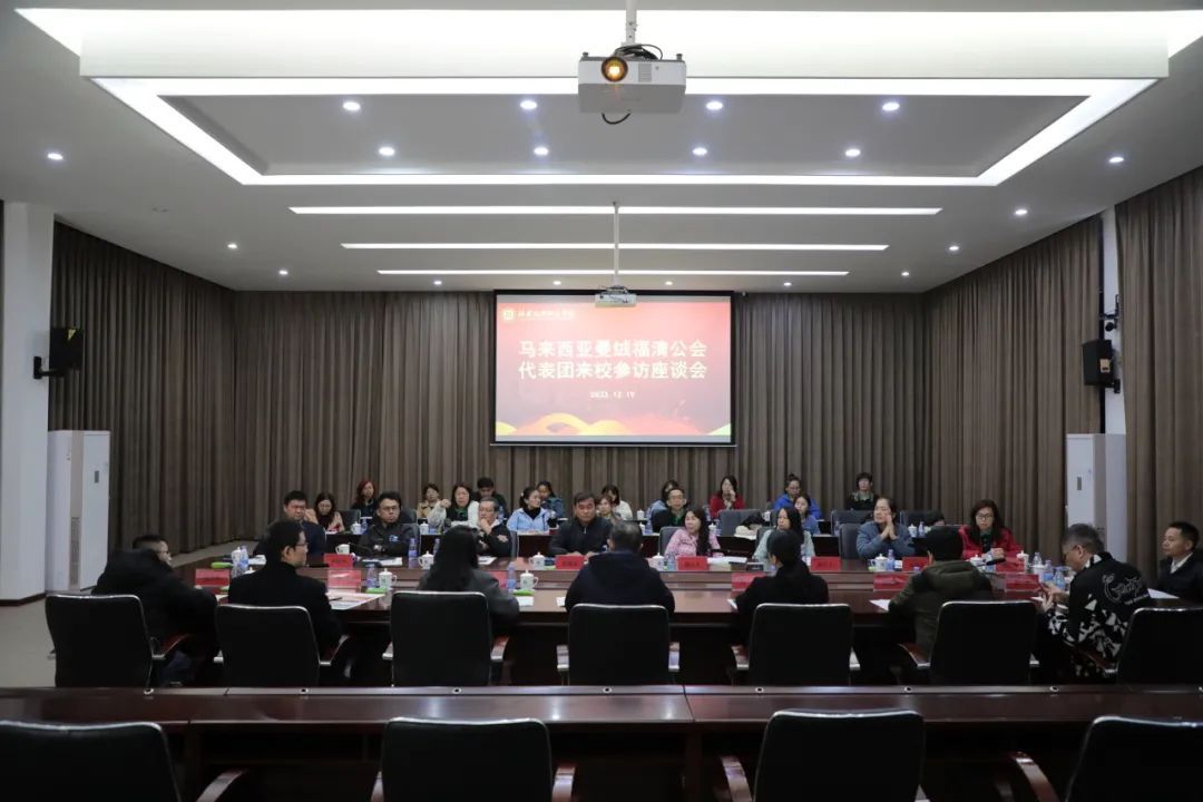 座谈会上,双方互赠校礼。会前,马来西亚曼绒福清公会一行还参观了校史馆和校园。(校党委统战部)