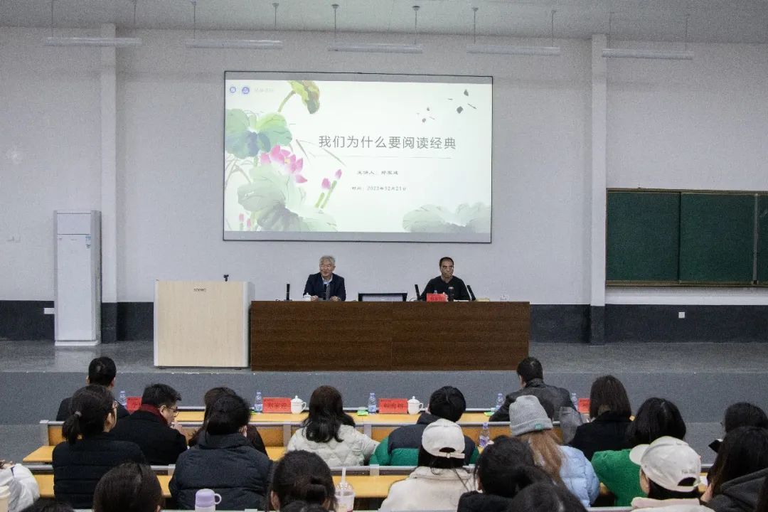 围绕《我们为什么要阅读经典》的报告主题,郑家建副校长作了深入浅出的精彩阐释。他表示,阅读经典是我们认识世界的需要,是我们情感的需要,也是自我认知的需要。虽然生命是短暂、脆弱且孤独的,但我们可以通过阅读延伸生命的长度、厚度和宽度。他同时指出,阅读是对精神的追求,是对信仰的追求,但是阅读不能代替生活,阅读之书不能代替生活之书,二者可以互相丰富、互相成就、互相启发。郑家建副校长的报告逻辑严密、声情并茂,古今中外经典信手拈来,解读分析文本细致深刻,对阅读和生命的阐释令人长思,现场气氛活跃,掌声不断。(党政办公室 文化与法律学院(海外教育学院))