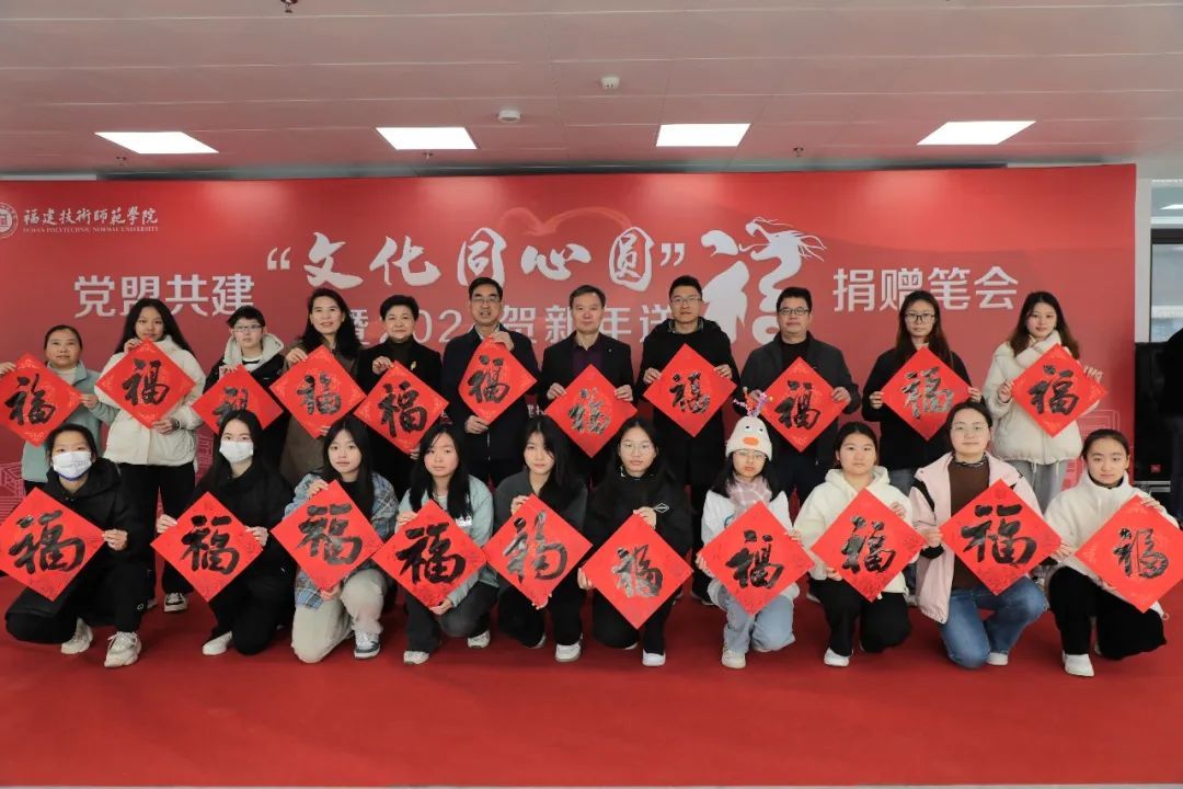 1月12日上午,我校与民盟福建省委会联合主办的“党盟共建‘文化同心圆’”暨贺新年送“福”捐赠笔会在五马山校区林联兴科技楼2层林蔡凤英图书馆举行。民盟福建省委会秘书长、二级巡视员刘丹艳,我校校长吴克寿、副校长商光美,民盟省、福清市委员会相关负责同志和学校相关职能部门负责人、师生代表等参加活动。