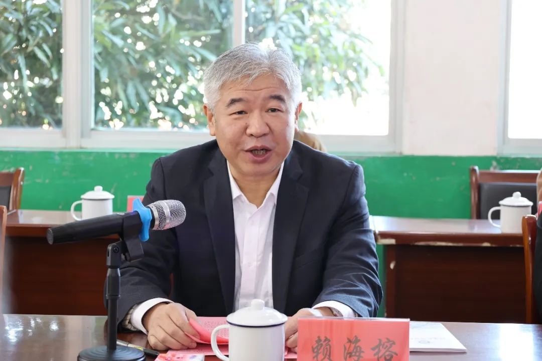 赖海榕书记作了热情洋溢的致辞。他指出,学校将课程思政实践教学基地落户于古田中学、古田中心小学,旨在深入贯彻落实习近平总书记关于“大思政课”的重要论述,发挥古田独特的地理优势和人文环境,更好地通过校内校外联通互动,汇聚社会实践中蕴含的宝贵教育资源,让青少年在体验生活、感悟时代的过程中汲取智慧、练就本领。他强调,学校将充分发挥高校优势,整合社会力量,拓展大思政教育资源,共同推进大中小学思政教育一体化实践,以学段融通、内外一体、过程衔接,实现思政教育的时空场域拓展和教育方式改革。他希望两地三校加强联动、互联互补,协力打造既有历史“原味”、又有新时代“品味”的实践教学品牌,共同提升思政教育的古田辨识度。