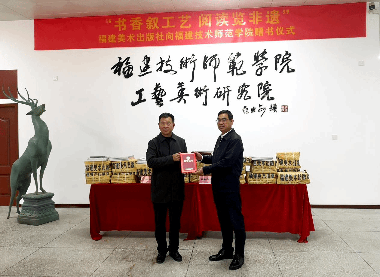 为传承弘扬闽都文化,提升我校工艺美术专业学生艺术文化知识素养,福建美术出版社向我校捐赠了《闽都福文化》《中国绘画与寿山石雕》《漆艺漆画髹饰技艺》《福建传统印刷图鉴·四堡雕版卷》等323册富有福建文化特色精装书籍。