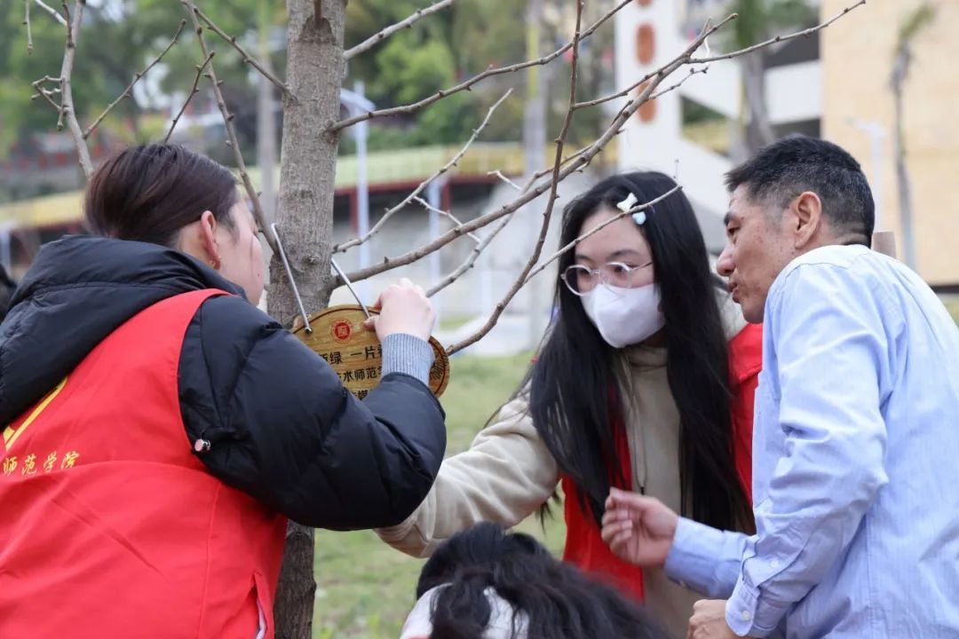 各学院师生志愿者还为绿植挂上新牌,勉励广大师生共植“信念树”“使命树”和“奋斗树”,用实际行动争做生态文明建设的践行者和文明校园创建的贡献者。(后勤管理处)