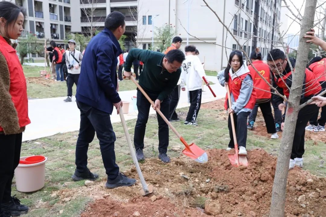 春暖大地万物苏,植树添绿正当时。3月13日下午,我校在五马山校区和石竹山校区举办“一片新绿 一片希望”植树节活动。校党委书记赖海榕、校党委副书记林海峰、副校长商光美与师生志愿者一起参加义务植树活动,为美丽校园增添绿意。