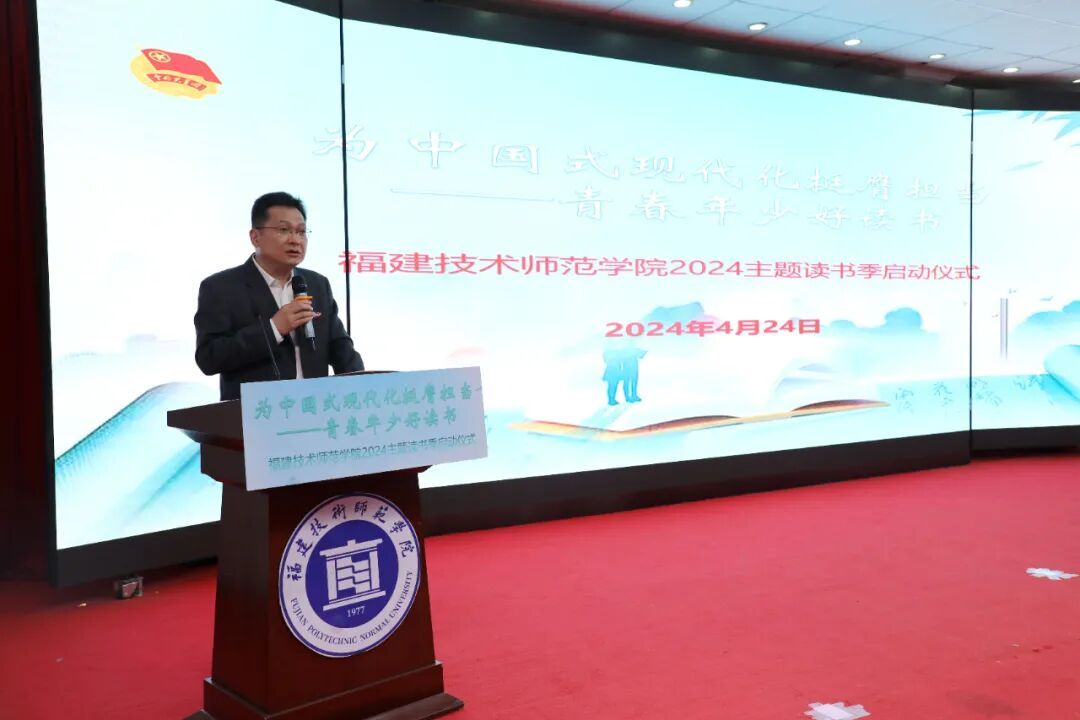 院党委副书记林海峰发表了热情洋溢的讲话,并宣布学校“为中国式现代化挺膺担当——青春年少好读书”2024年主题读书季活动正式启动。他深入阐述了习近平总书记的读书观,并结合自身学习感悟,寄语青年大学生爱读书、读好书、善读书,为中国式现代化挺膺担当,为实现中华民族伟大复兴的中国梦贡献青春力量。他指出,读书可以增长见识、开阔视野,激发热情、实现梦想,陶冶情操、提升品质,是我们每个人最好的选择。他希望学校各单位和各级团学组织担起为党育人责任,引导新时代大学生深学细悟党的创新理论,以坚定的信念和饱满的热情投入主题读书季活动,不断推进书香校园建设,持续深化全民阅读,积极营造爱读书、读好书、善读书的院风教风学风,共同书写属于我们这代新人的辉煌篇章。(团委 图书馆)