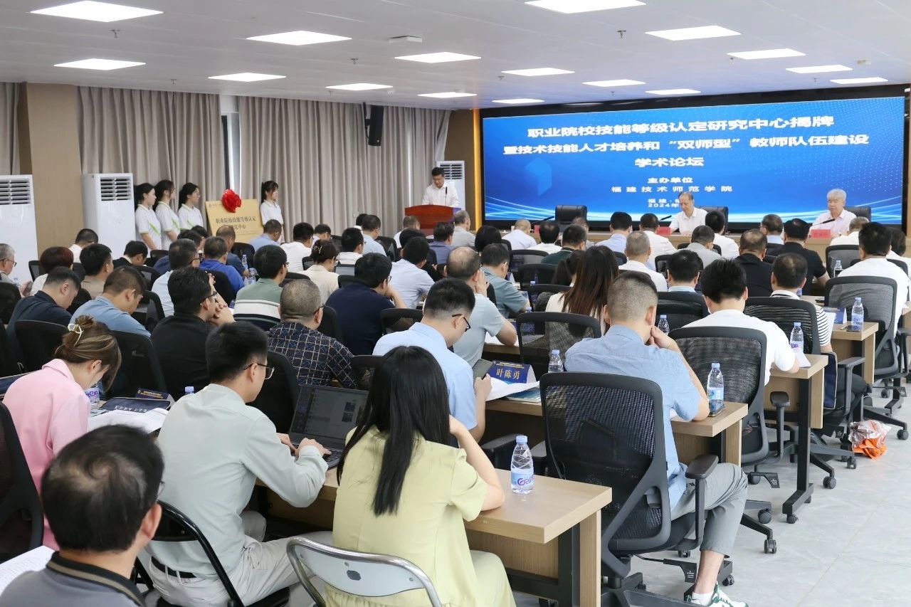 揭牌仪式后,与会领导、嘉宾共同参加技术技能人才培养和双师型教师队伍建设学术论坛。来自全国各地专家,分别作了《“双师型”教师队伍建设之我见》《筑牢中国式现代化建设的技能根基——广州技工教育内涵发展的创新实践》等主旨报告。省职业技能鉴定指导中心副主任翁玉渭对《福建省人力资源和社会保障厅福建省教育厅关于推动职业院校职业技能评价工作的通知》文件进行解读。