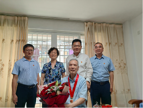 林海峰副书记来到张恒忠同志家中,代表校党委为他颁发“光荣在党50年”纪念章,送上鲜花,并致以亲切问候。林海峰副书记向张恒忠同志长期以来为学校事业发展作出的贡献表示感谢,并详细询问他的身体、生活和家庭情况,倾听他对学校事业发展的意见建议,祝愿他身体健康、家庭幸福。