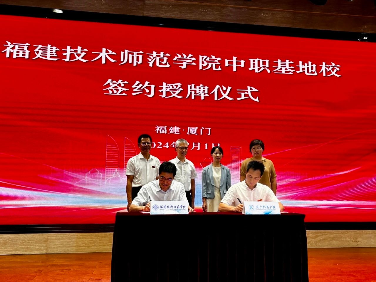 7月1日,我校中职基地校签约授牌仪式在厦门信息学校举行。我校党委副书记、校长吴克寿,厦门市委教育工委委员、市教育局副局长洪军,集美区委教育工委委员、区教育局副局长任可,我校附属厦门工商旅游学校党委书记、校长杨经葵,厦门信息学校党委书记庄铭星,厦门信息学校党委副书记、校长廖怀东,厦门市集美职业技术学校党总支副书记、校长黄勇等出席本次签约授牌仪式。我校教务处负责人,厦门信息学校、厦门市集美职业技术学校在家校领导、中层干部、教师代表等参加了有关活动。
