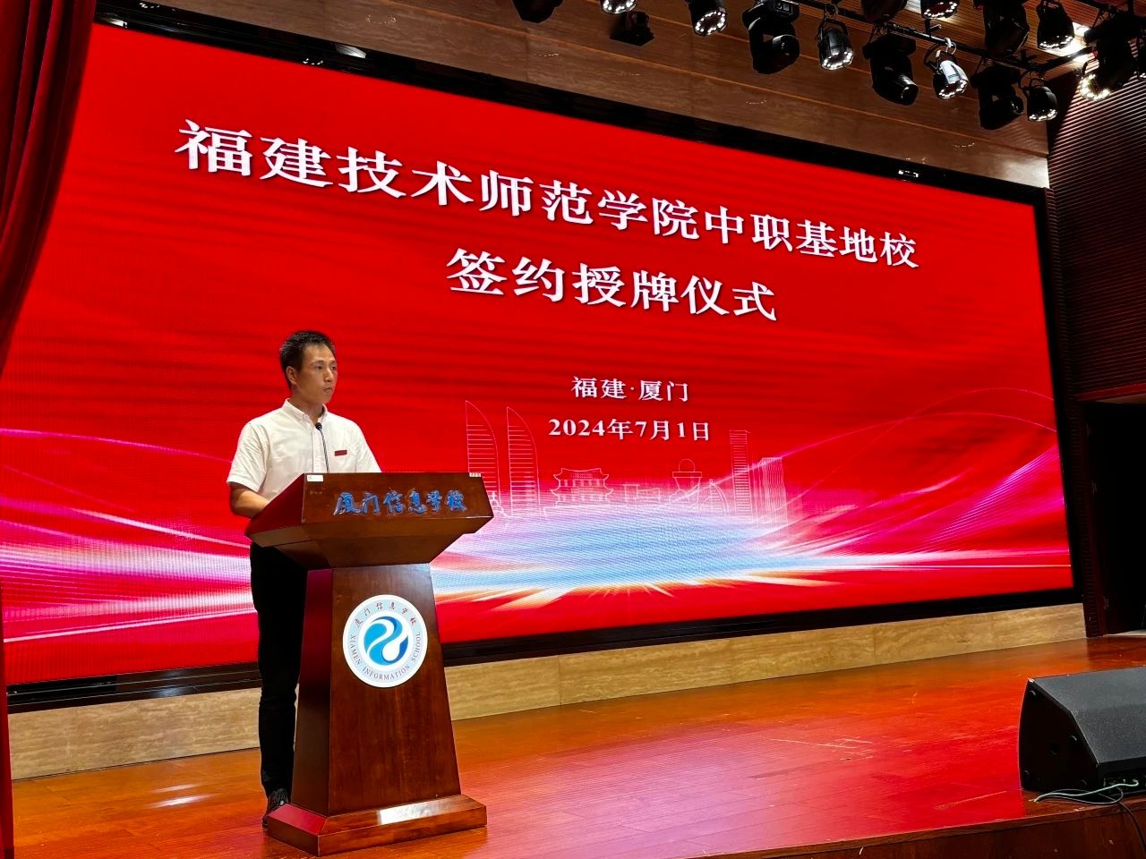 厦门信息学校党委副书记、校长廖怀东在致辞中表示,厦门信息学校将依托福建技术师范学院中职基地校平台,在打造新时代双师型教师队伍上、在培育思政课一体化教学成果上、在探索构建现代职业教育体系上率先突破,为高等教育与职业教育融合发展打造厦门范式、提供福建经验。