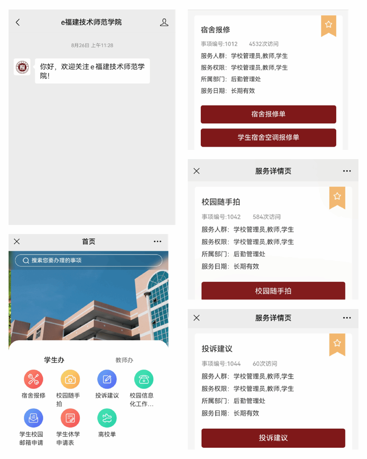宿舍的灯坏了、卫生间洁具坏了、宿舍空调坏了……无论是宿舍里的哪一处“故障”,您都可以点击“宿舍报修”栏目进行登记。