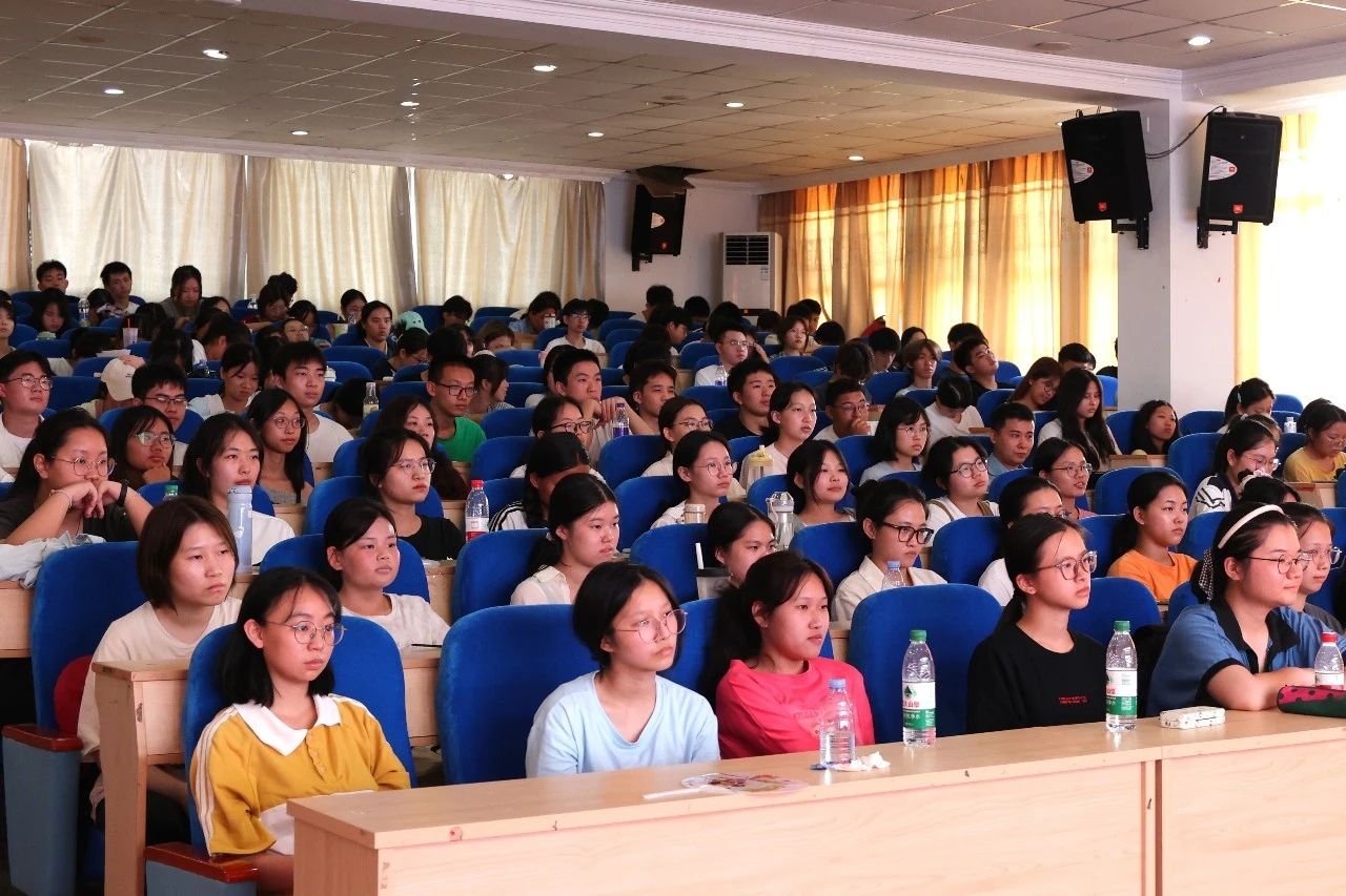 9月12日下午,校党委书记赖海榕教授在五马山校区金泰学术报告厅,为2024级思想政治教育、汉语言文学和包装工程等专业本科新生讲授开学第一课。