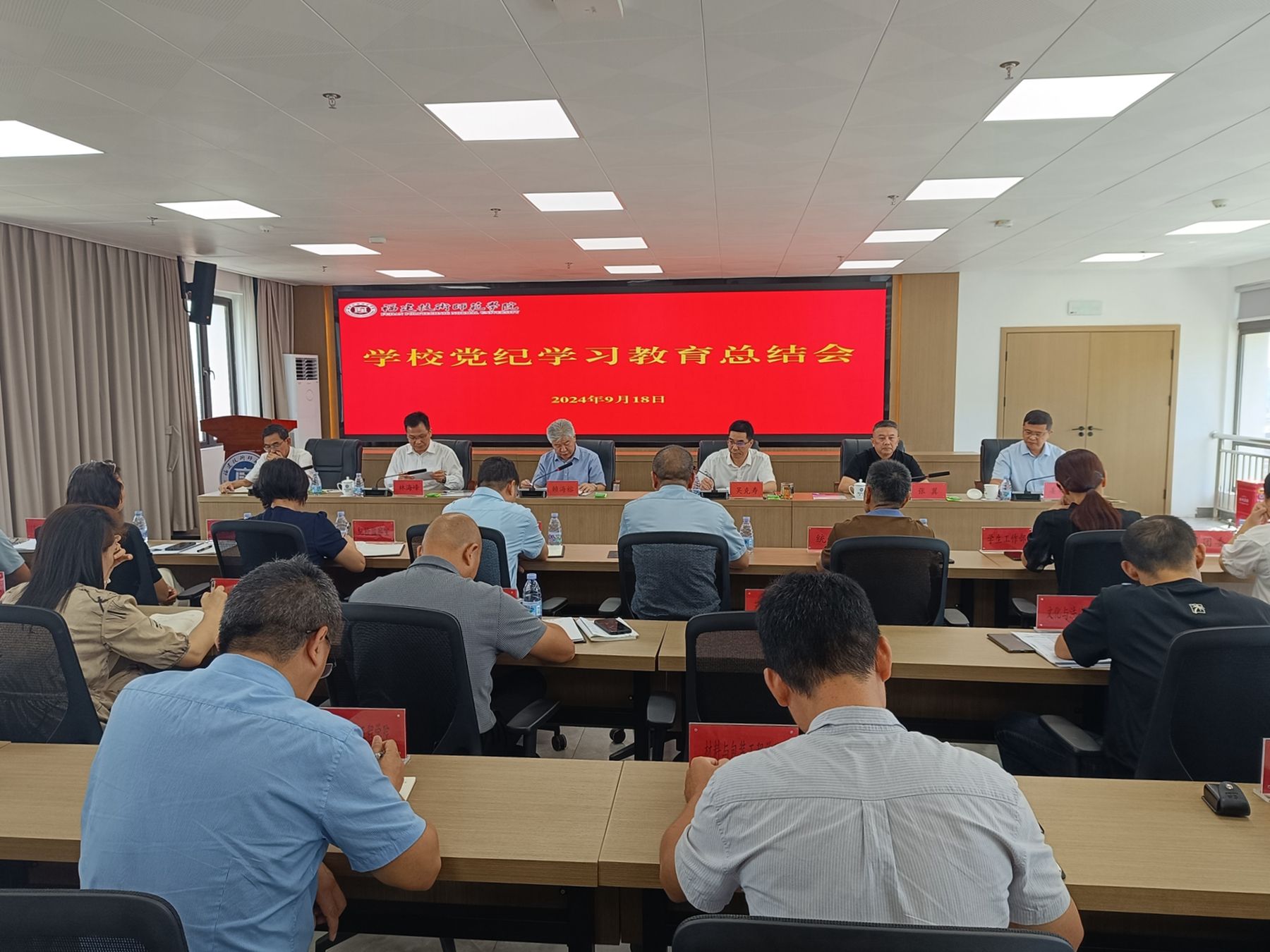 9月18日上午,校党委召开党的建设工作领导小组(扩大)会议,总结党纪学习教育工作,部署党纪学习教育常态化长效化工作。校党委书记赖海榕作了讲话,校党委副书记、校长吴克寿主持会议。校领导,学校党的建设工作领导小组成员和各二级党组织主要负责人参加了会议。
