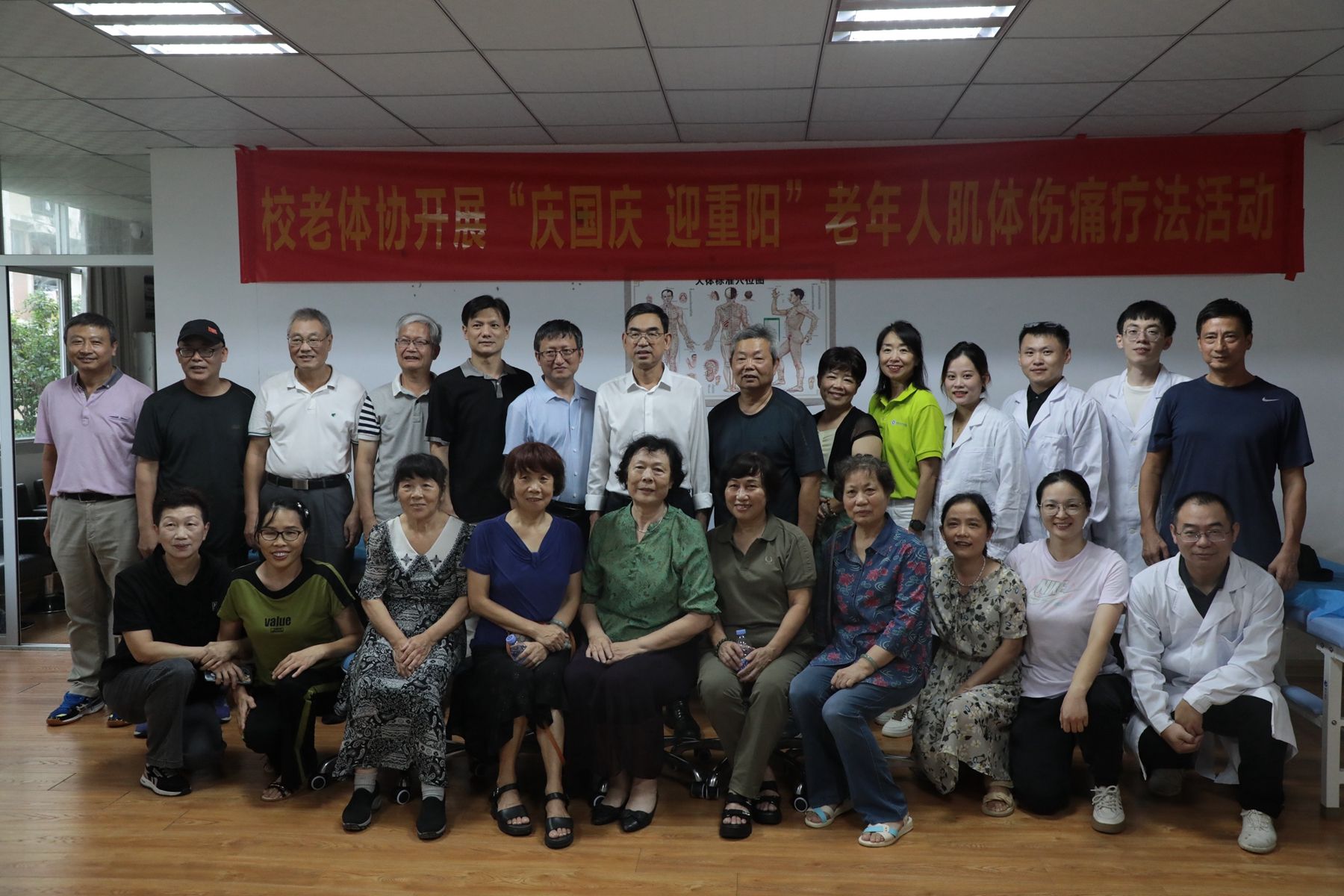 9月25日下午,校老体协在体育学院康复治疗实验室举行“迎国庆,庆重阳”老年人肌体伤痛理疗活动。校党委委员、副校长商光美到场指导。人事处负责人,校老体协成员及部分退休教职工参加活动。
