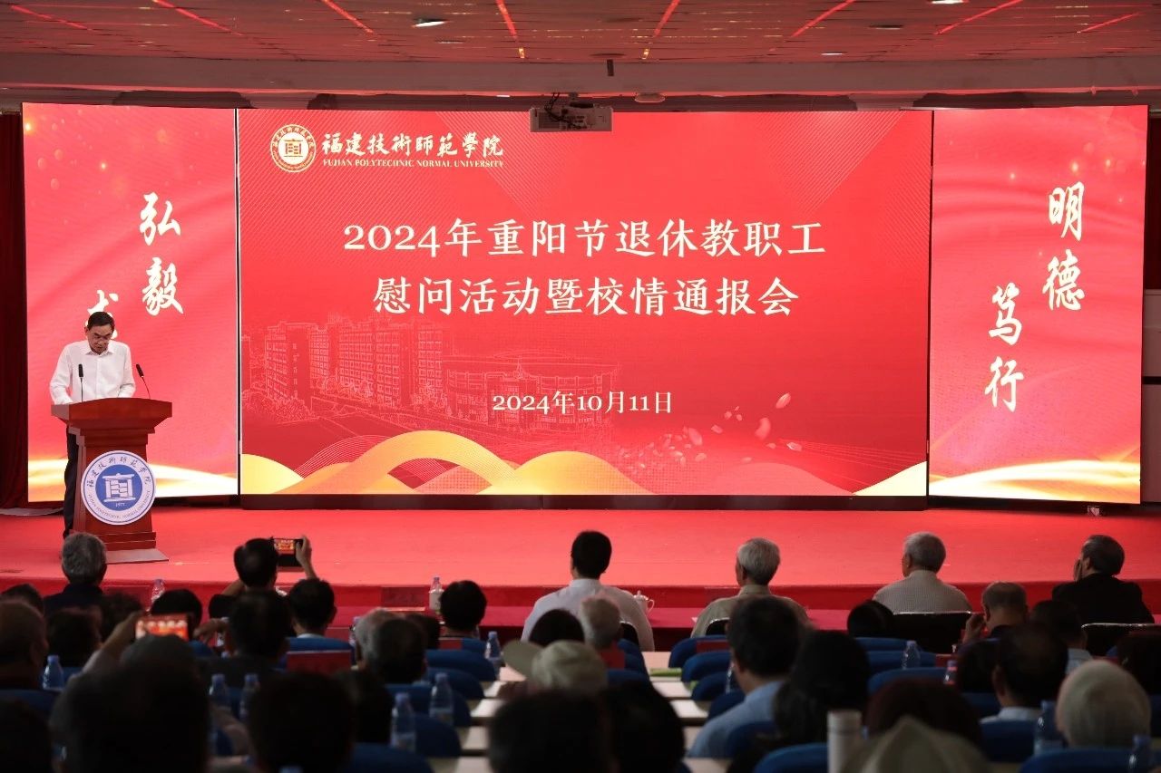 为深入学习贯彻党的二十届三中全会精神,弘扬中华民族尊老、敬老、爱老、助老的传统美德,共建和谐温馨校园,共谋学校事业发展,10月11日上午,我校在五马山校区金泰学术报告厅召开“九九重阳节,浓浓敬老情”为主题的重阳节退休教职工慰问活动暨校情通报会。校长吴克寿教授出席会议并致辞。各单位党政主要负责人、退休工作联络员、退休教职工代表参加了活动。会议由校党委委员、副校长商光美主持。