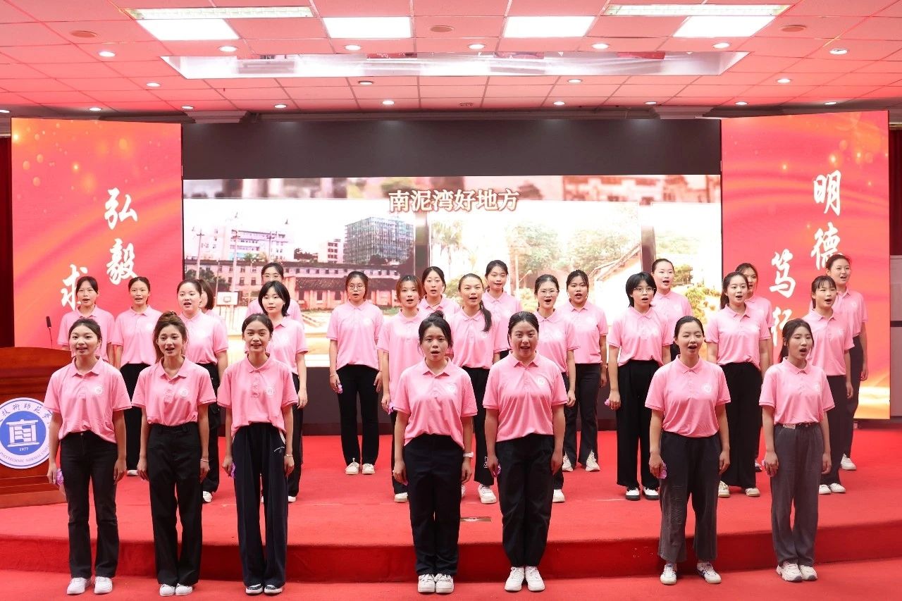 校艺术团学生合唱队演唱了经典歌曲《南泥湾》,致敬为学校事业发展辛勤耕耘、无私奉献的老同志们。