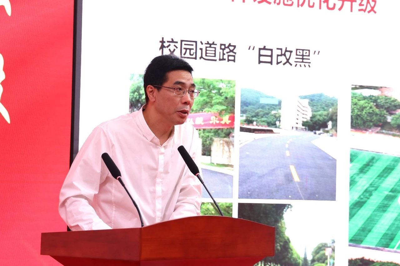 吴克寿校长代表校党委、行政向为学校发展倾注心血、奉献青春的全体退休教职工致以节日的慰问和衷心的感谢,向钻石婚、金婚夫妇和寿星们致以诚挚的祝福。吴校长从财政收入总盘快速扩大、学校办学规模稳步增长、办学条件设施优化升级、人才师资队伍提质壮大、科研创新能力持续提升、主动服务职教体系构建、人才培养质量持续提高、对外开放办学拓展深化等八个方面通报了2024年以来学校改革建设发展所取得的成绩。他表示,学校所取得的成绩,离不开全体师生员工的团结奋斗,离不开广大老同志的关心支持。他强调,离退休老同志是学校事业发展的宝贵财富。学校高度重视离退休工作。各单位要继续弘扬尊老、敬老、爱老、助老的传统,为老同志办实事、做好事,认真将各项涉及离退休工作的政策落到实处,用心用情做好离退休工作。他同时希望老同志们:一要继续关心支持学校发展,发挥余热;二要注重身心健康,享受美好生活;三要弘扬优良家风,共筑安全晚年。