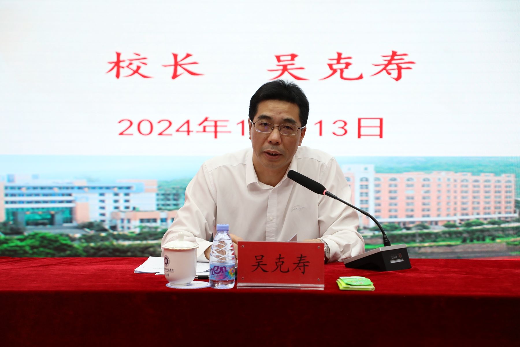 11月13日下午,我校在五马山校区科学楼金泰学术报告厅开展学习贯彻党的二十届三中全会精神专题培训。校党委副书记、校长吴克寿作了题为《深入学习贯彻党的二十届三中全会精神 推动学校各项改革任务落地见效》的辅导报告。报告会由校党委副书记林海峰主持。