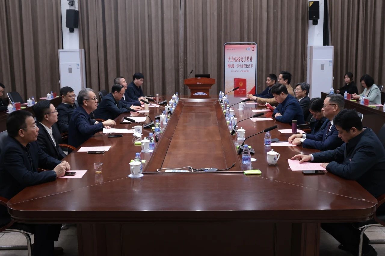 校长吴克寿与翁小杰副主席,何鸣副主任、陈元寿副主席等举行了专题座谈会,就推动高校法治教育与侨界法治服务融合发展进行了深入交流。吴克寿校长表示,学校将充分发挥所处区域优势和学科专业优势,强化与侨联合作,共同推进宪法宣传、涉侨法律服务和法治文化建设。
