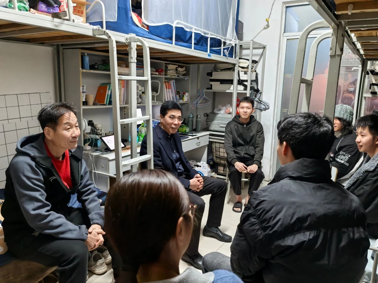 走访过程中,校领导与同学们进行了亲切交流,详细了解同学们在校学习、生活和就业规划等方面的情况与需求,并叮嘱同学们要夯实专业基础,培养广泛兴趣,努力提升自我,充分利用大学丰富的教育资源不断拓宽自己的视野,勉励同学们珍惜大学时光,以奋斗姿态迎接每一个挑战,用实际行动践行“请党放心 强国有我”的青春誓言,努力成为堪当民族复兴重任的时代新人。