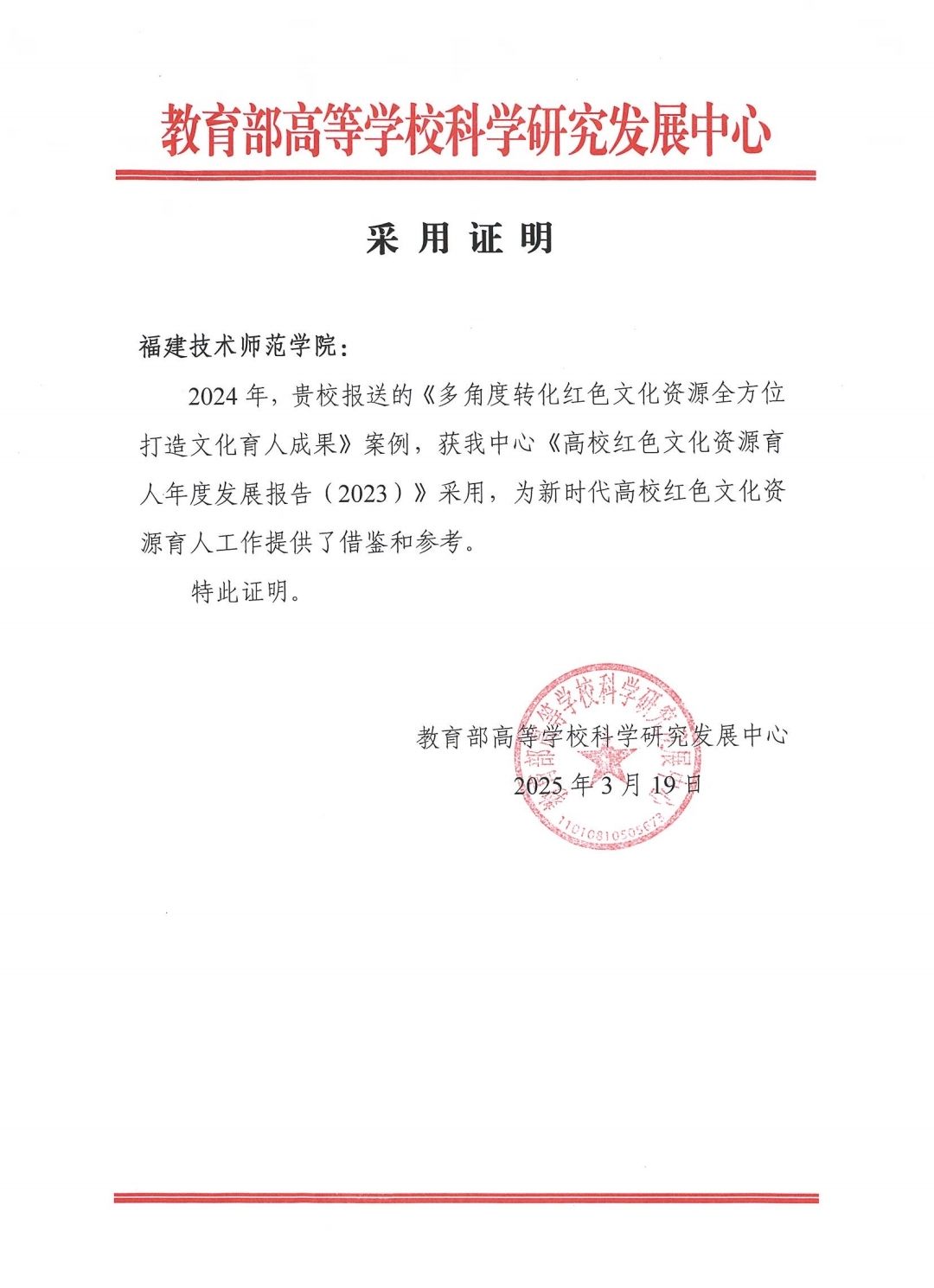 近日,由我校宣传部吴江源撰稿的案例《多角度转化红色文化资源全方位打造文化育人成果》成功入选教育部高等学校科学研究发展中心发布的《高校红色文化资源育人年度发展报告(2023年)》。该案例从红色文化资源转化为教育资源,为新时代高校红色文化资源育人工作提供借鉴和参考。