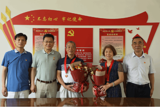 在中国共产党成立104周年到来之际,受校党委书记涂荣、校长吴克寿委托,6月20日上午,校党委副书记林海峰前往五马山校区离退休教职工活动中心,亲切慰问我校两位党龄满50年的老党员,为他们佩戴“光荣在党50年”纪念章。