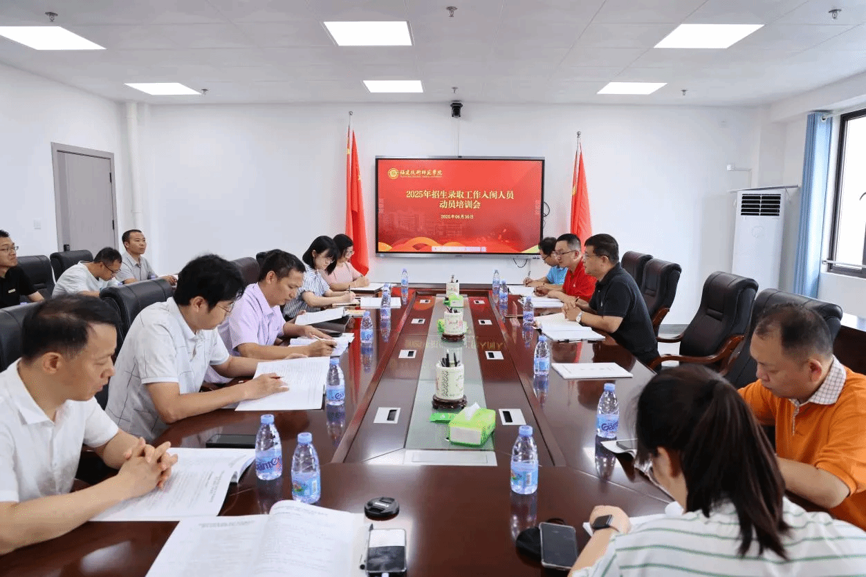 6月30日上午,我校在联兴楼第一会议室召开2025年招生录取工作入闱人员动员培训会。副校长姜兴山主持会议并做动员讲话,全体招生录取工作入闱人员和招生办公室成员参加会议。