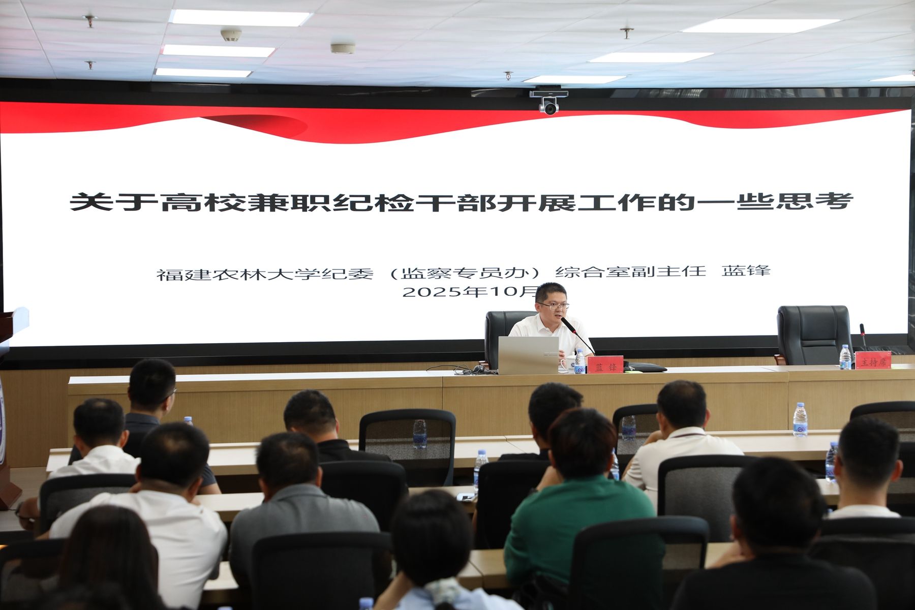 本次培训邀请了省审计厅原副巡视员叶晓钢同志以及福建农林大学纪委(监察专员办)综合室副主任蓝锋同志作辅导报告,并组织观看了警示教育片。