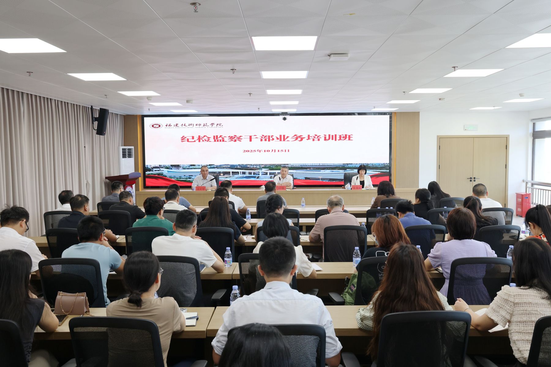 为贯彻落实纪检监察工作规范化法治化正规化建设年行动要求,进一步提升学校纪检监察干部的专业素质和履职能力,10月15日,校纪委(监察专员办)在林联兴科技楼集贤厅举办纪检监察干部业务培训班。各二级党组织纪委书记、纪委委员,机关各党支部纪检委员,校特约监察员,纪检监察室干部共64人参加培训。