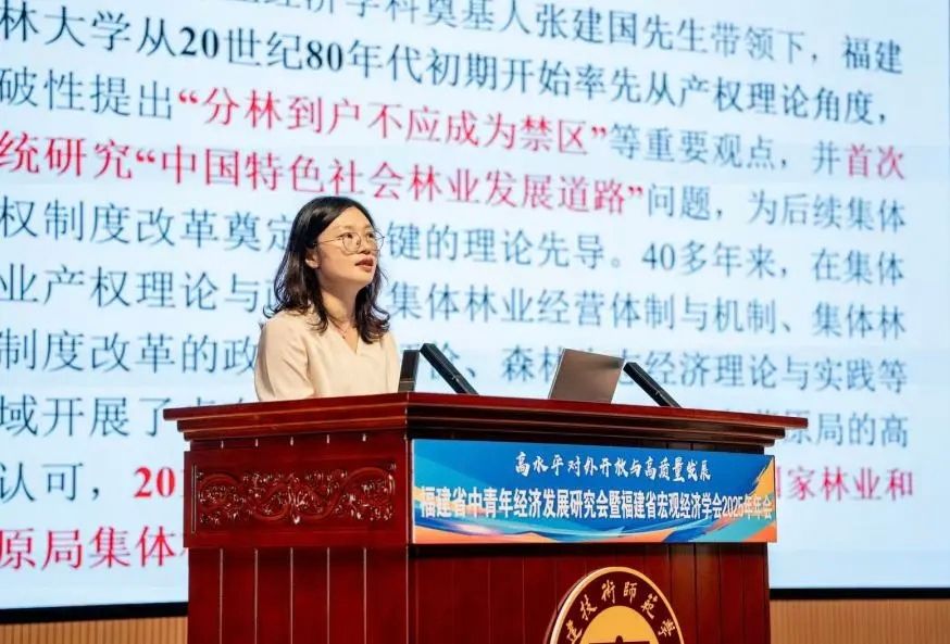 南京大学商学院原院长沈坤荣教授,厦门大学经济学院金融系蔡庆丰教授,福建农林大学经济与管理学院洪燕真教授,以及我校“特聘教授”冯玲教授先后作了主旨报告。30余位中青年学者围绕区域创新、绿色金融、数字经济、制度型开放、乡村振兴、文旅融合等热点领域汇报了最新研究成果,展开了深入交流。