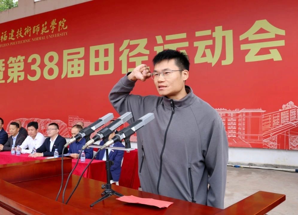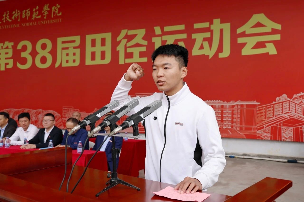运动员代表2022级体育教育专业2班陈明丰同学、裁判员代表体育学院石松松老师分别代表运动员和裁判员宣誓。