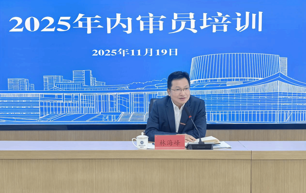 11月19日,我校在五马山校区林联兴科技楼集贤厅举办2025年内审员培训。校党委副书记林海峰出席并作专题授课。