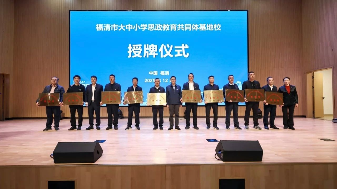 会上还举行了授牌仪式,我校马克思主义学院、福建农业职业技术学院马克思主义学院、福清市教师进修学校获颁“福清市大中小学思政教育共同体”单位,福清第一中学等10所学校获颁“福清市大中小学思政教育共同体基地校”单位。