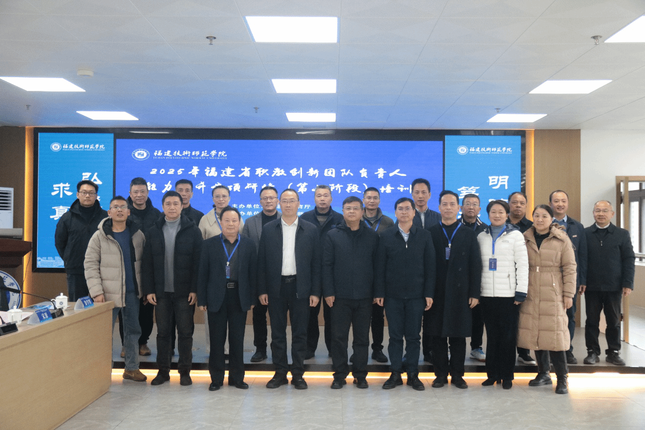1月23日至24日,2025年福建省职教创新团队负责人能力提升专项研修(第二阶段)在我校举办。本次培训由福建省教育厅主办、我校承办,共有来自全省中高职院校近20名职教创新团队负责人参加。副校长姜兴山,继续教育学院、教育学院、文化与法律学院负责人出席开班仪式。