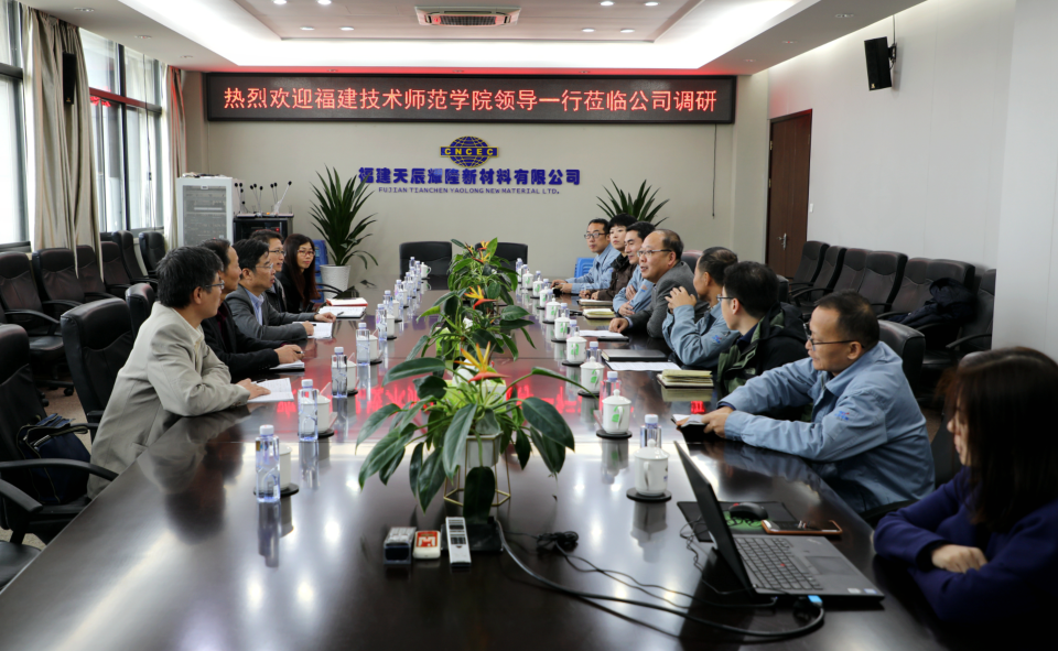 在福建天辰耀隆新材料有限公司,公司党委书记、董事长邱育新和党委副书记王灏与廖校长一行亲切交流。廖校长表示,学校与天辰耀隆有着良好合作基础,希望在学校新的发展征程中继续得到公司的积极支持,拓展合作交流,更好地助力校企发展,服务区域经济社会发展。双方就学生就业、人才培养、研发技改和检测分析等方面的进一步合作展开讨论,并初步达成共识。