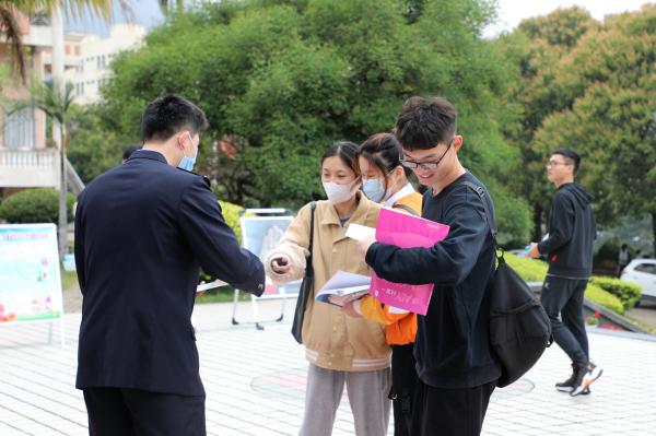 为做好校警联动协作,共建平安校园,3月31日,学校联合福清市公安局国保大队、福清市公安局龙江派出所、福清市龙江街道等部门,在五马山校区开展反邪教、防诈骗宣传教育活动。副校长商光美和相关职能部门负责人等参加了活动。
