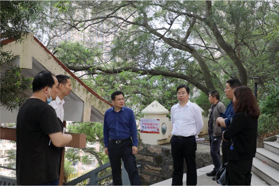 廖深基校长带队深入校园和周边,实地查看校园消防管网、水电管网、围墙、地下防空设施、学生宿舍等情况,检查消防设施设备运行、水电布局和学生宿舍卫生等情况,并提出整改意见,要求责任单位限期整改。