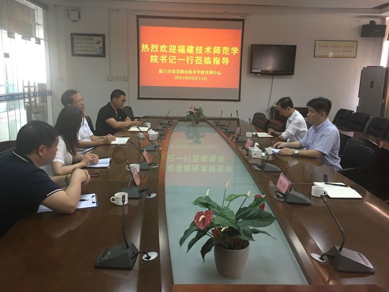 赖海榕书记介绍了学校基本情况。他表示,学校将认真落实《教育部、福建省人民政府关于支持厦门职业教育高质量发展助力两岸融合的意见》,发挥在职业教育师资和高素质应用型、技术技能型人才培养上的优势,与集美职业技术学校加强交流对接,不断提升两校的内涵建设和现代职业教育办学水平,共同为促进厦门职业教育高质量发展助力两岸深度融合作贡献。