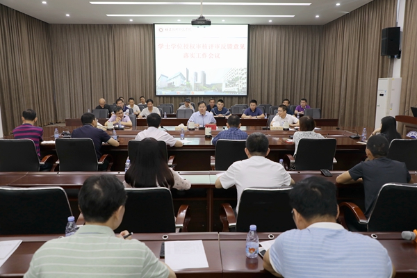 评估办负责人通报了学士学位授权审核评审专家组反馈意见和建议。相关职能部门和各二级学院行政主要负责任人针对反馈意见逐项提出整改措施。