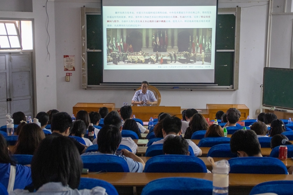 李豫闽教授紧扣主题,图文并茂地呈现了20世纪以来众美术家以多种形式参与、表现社会主义新中国发展历程的美术创作,特别是新中国成立以来主题性美术创作的重要现象。他指出,这一现象的产生是中国美术现代转型的重要标志之一。这些经典美术作品的产生既是美术家遵循艺术创作规律的具体实践,更是对波澜壮阔的中国共产党理想信念的赞美与颂扬。整场讲座主题鲜明,带领师生深刻领略了新中国成立以来现实主义绘画崇高与优美并存的审美价值。