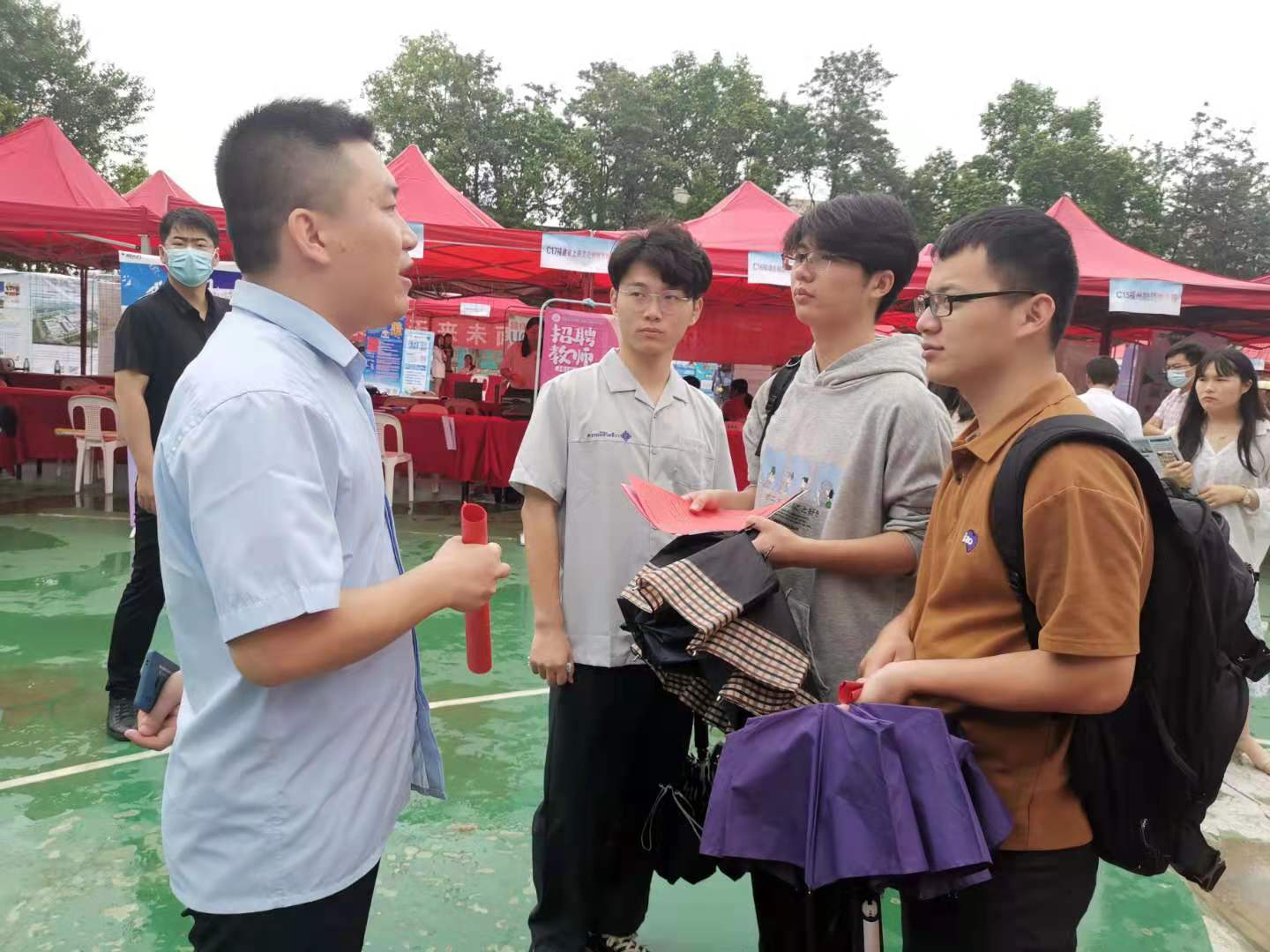 6月23日上午,我校在五马山校区篮球场举办2021年夏季校园招聘会,校党委副书记林海峰到场指导,学生工作处、各学院毕业班辅导员到场与用人单位对接交流,我校2021届毕业生及部分大三在校生到场参会。