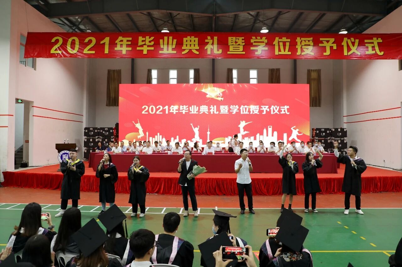 6月24日上午,我校2021年学生毕业典礼暨学位授予仪式在五马山校区球类馆隆重举行。福建师范大学党委常委、副校长陈庆华,校领导赖海榕、廖深基、张翼、陈志勇、商光美出席毕业典礼。各单位党政主要负责人,毕业班辅导员、2020届部分毕业生代表和2021届全体毕业生参加了毕业典礼。典礼由校党委副书记林海峰主持。