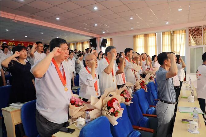全体参会党员在现场集体宣誓,重温入党誓词。