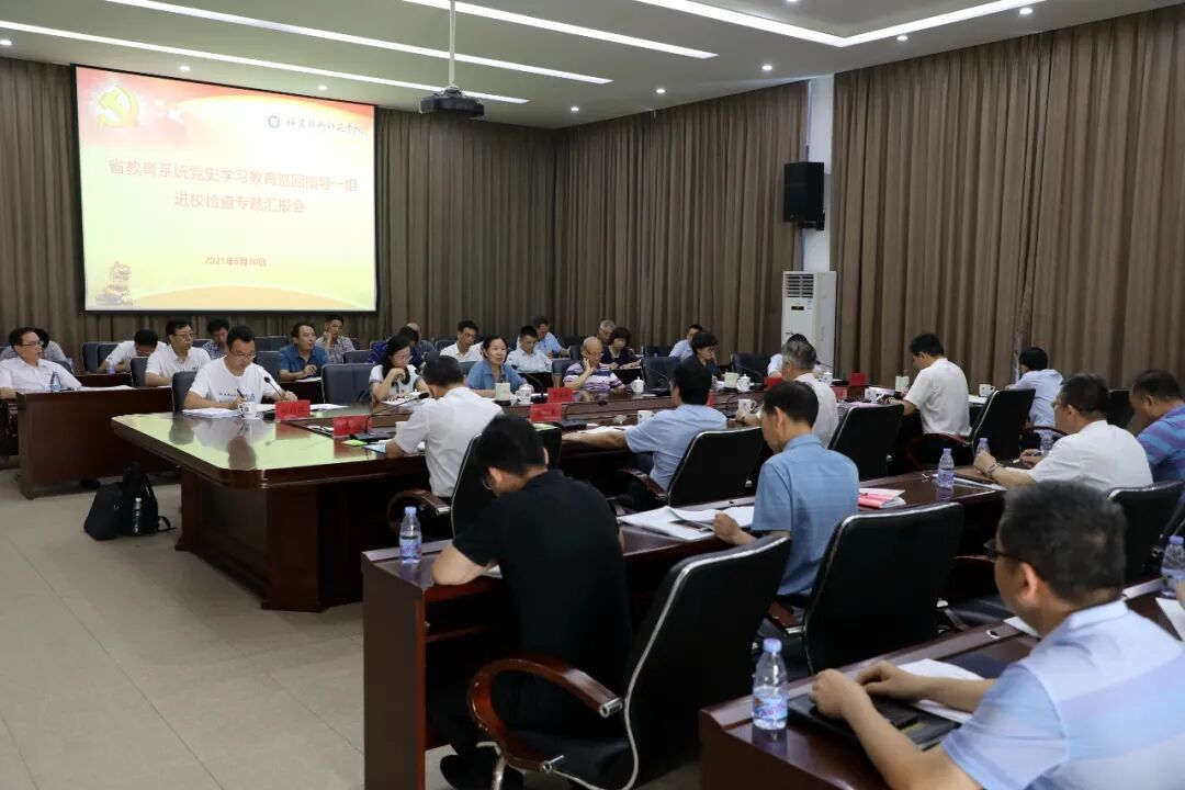 6月30日上午,省教育系统党史学习教育巡回指导一组在省教育厅(省委教育工委)原巡视员李金莲的率领下莅校开展党史学习教育第二轮巡回指导。校党史学习教育领导小组全体成员和办公室成员单位主要负责人,以及各二级单位党组织主要负责人等参加有关活动。