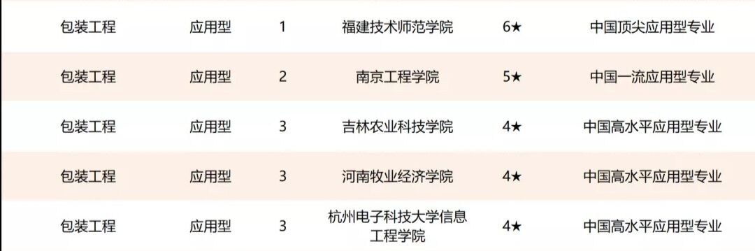 近日,由全国第三方大学评价机构艾瑞深校友会网(Cuaa.Net)独家撰写、科学出版社正式出版发行的《2021校友会中国大学排名—高考志愿填报指南》最新发布2021校友会中国一流专业排名、2021中国轻工类一流专业排名。在2021中国轻工类一流专业“应用型”——包装工程专业排名中,我校包装工程专业高居首位,获得6星评价,办学层次为中国顶尖应用型专业。